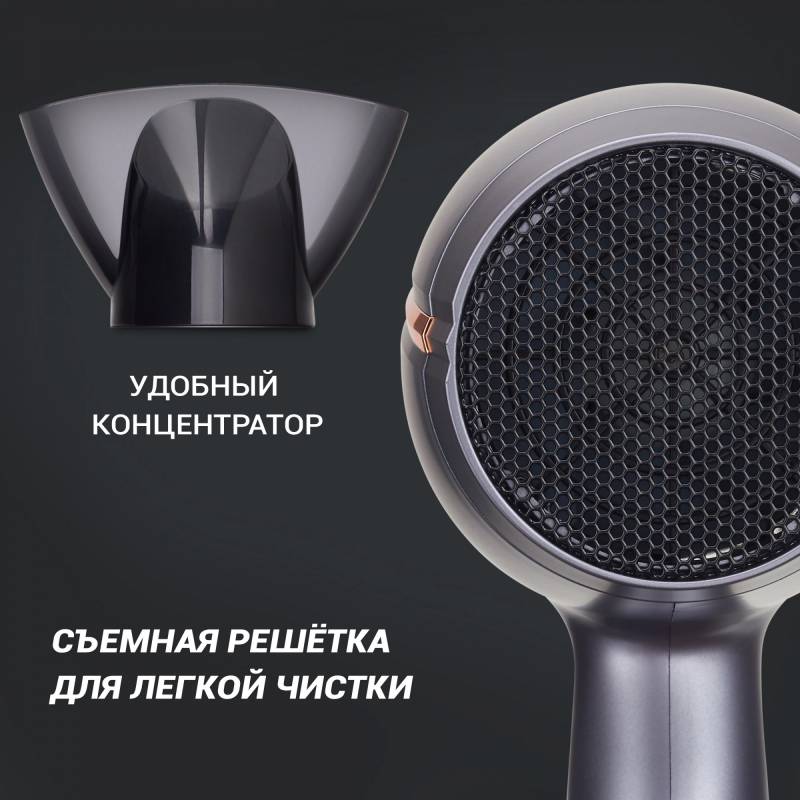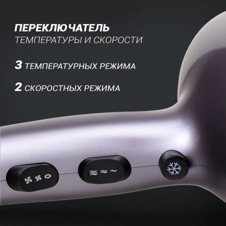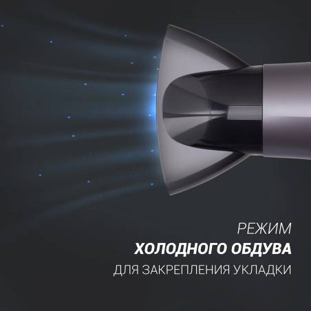 - Турмалиновый ионизатор генерирует отрицательно заряженные частицы, снимая статическое электричество с волос, облегчая расчесывание волос и сохраняя их внутреннюю влагу. Волосы приобретают красивый здоровый вид. Режим холодного обдува для закрепления уклад
