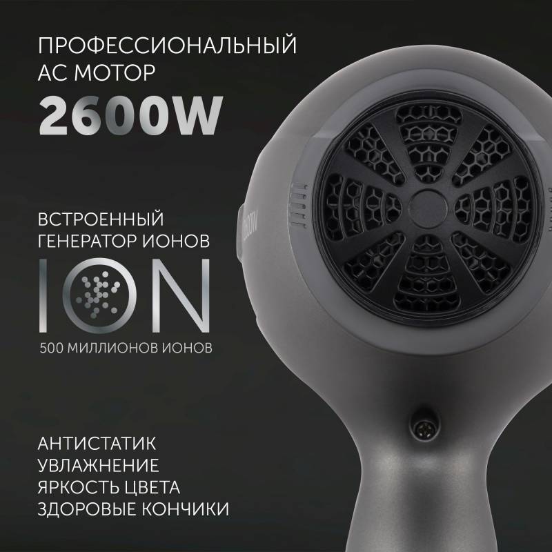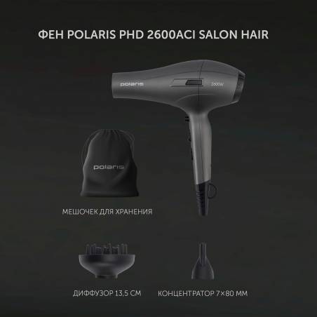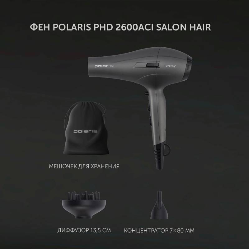 Фен Polaris PHD 2600ACi Salon Hair 2600Вт серый (PHD 2600ACI)