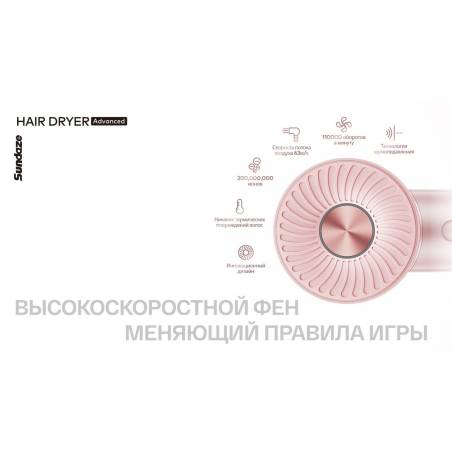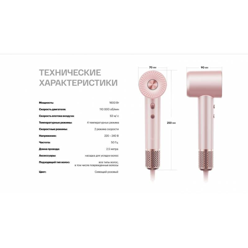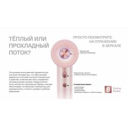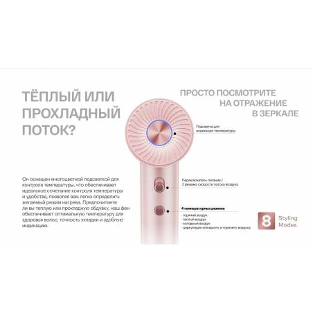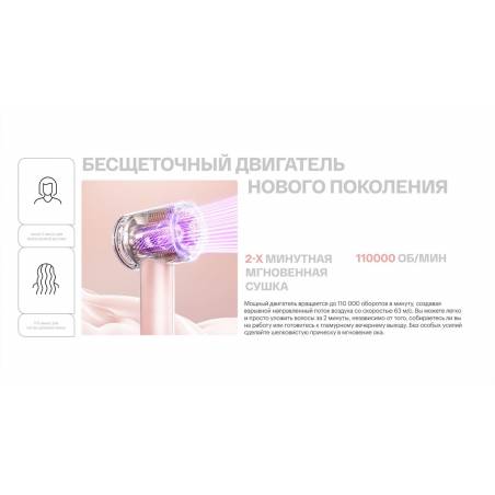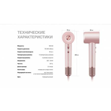 - Высокоскоростной фен со скоростью потока 63 м/с, обеспечивает мгновенную сушку волос всего за 2 минуты, 4 температурных режима и 2 режима скорости помогут подстроиться под любой стиль укладки. Компактный и легкий. Бережно сохраняет волосы с 200 млн. негат