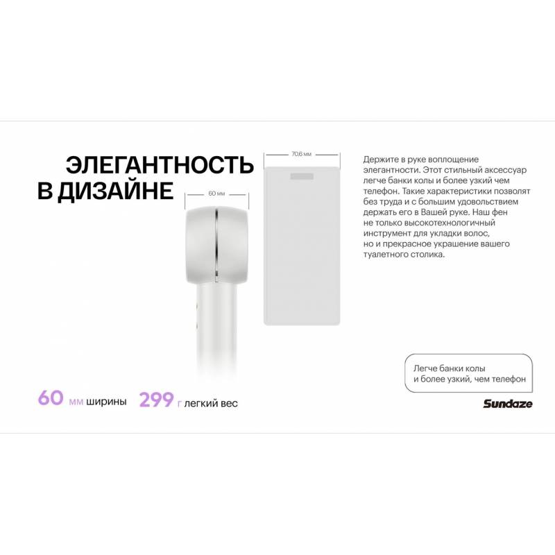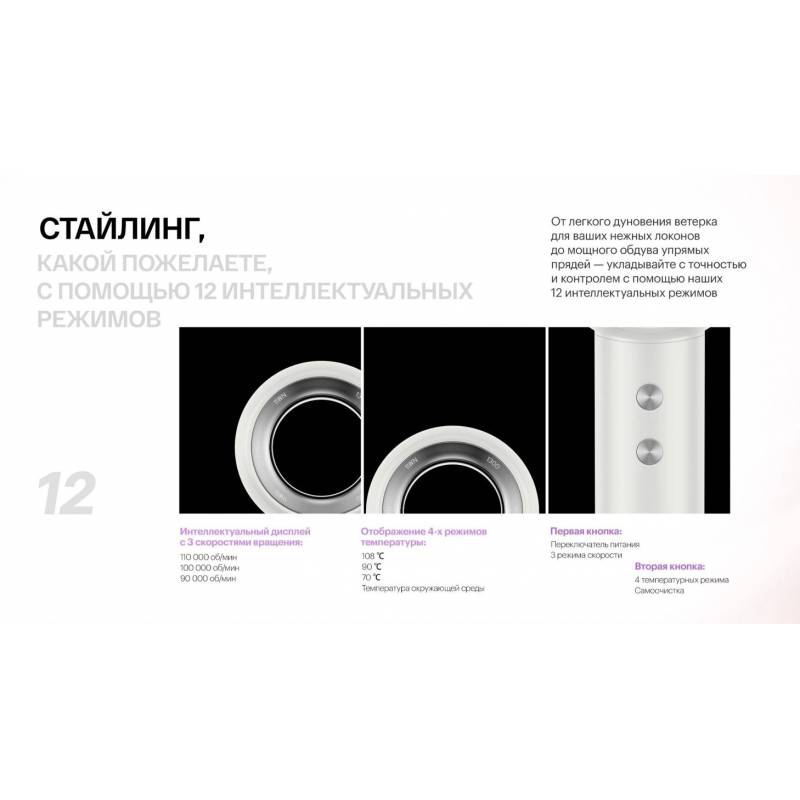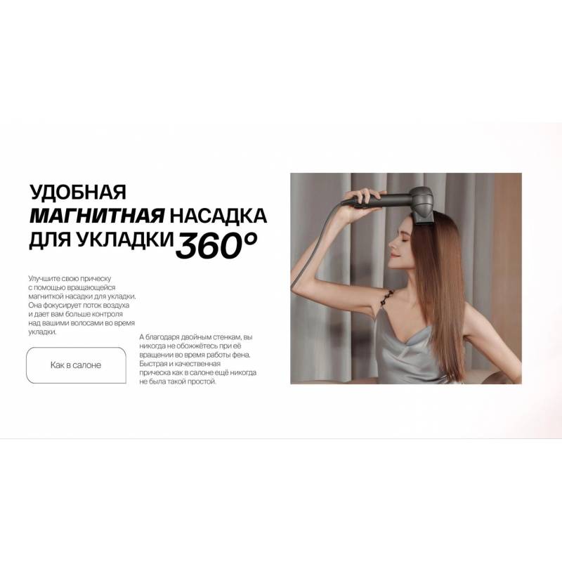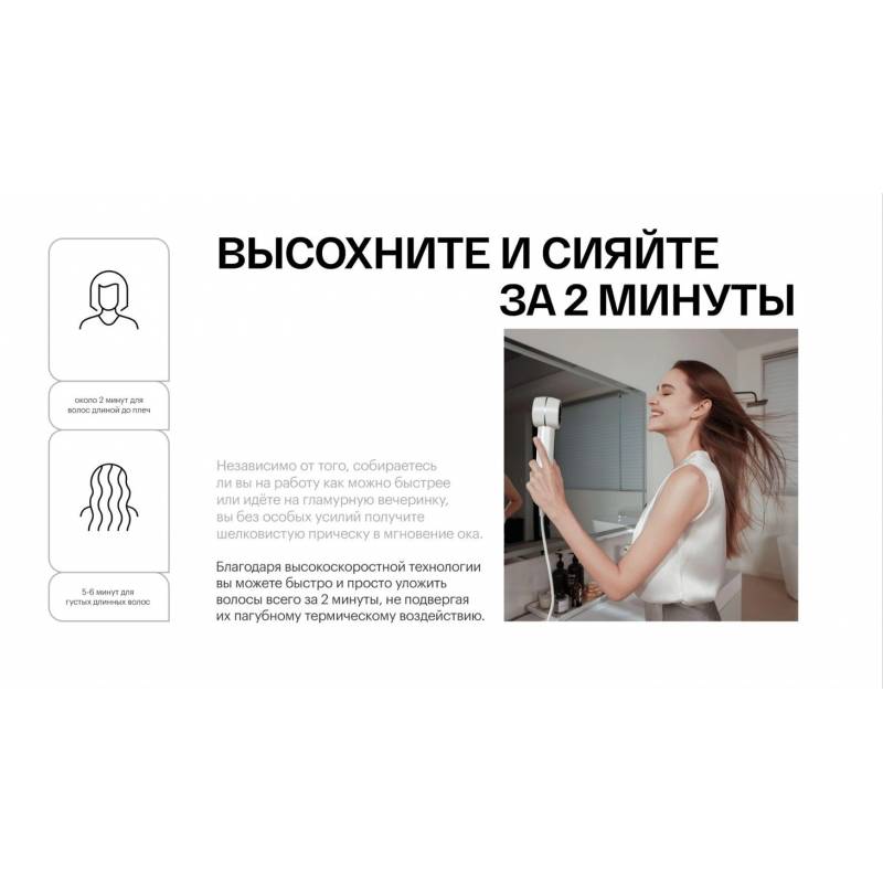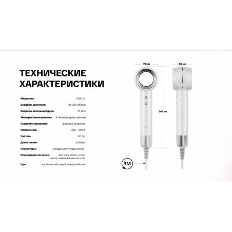 - Высокоскоростной фен со скоростью потока 70 м/с, обеспечивает мгновенную сушку волос всего за 2 минуты, 4 температурных режима и 3 режима скорости помогут подстроиться под любой стиль укладки. Стильный и компактный. Бережно сохраняет волосы с 500 млн. нег