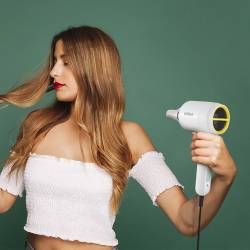 - С помощью фена КТ-3253 вы сможете быстро высушить волосы любой длины, придав им объём. Благодаря насадке-концентратору, которая вращается на 360°, поток воздуха можно направить под нужным углом, чтобы легко и быстро сделать укладку.