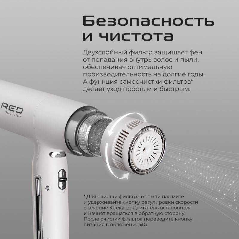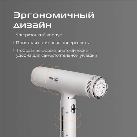 - Модель RED SOLUTION F580 – фен нового поколения мощностью 1500Вт. Ультратонкий корпус и всего 330 граммов веса оснащены мощным BLDC-двигателем с 5-ю вариантами обдува и 3-мя скоростями, самая большая из которых составляет 41м/с. Это самый легкий и самый с