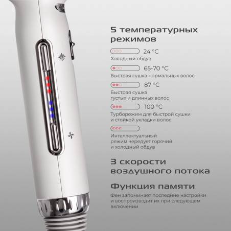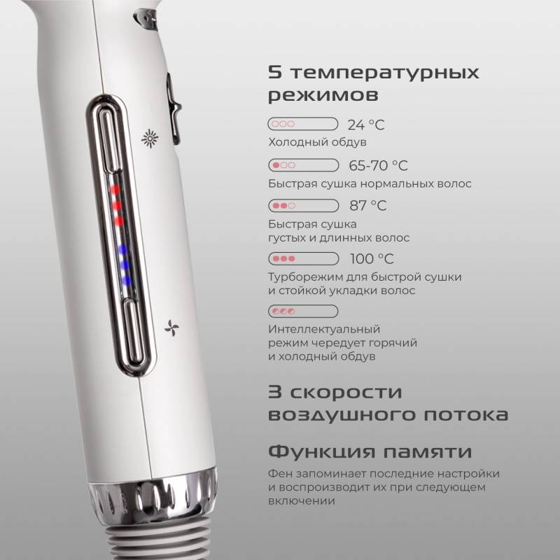 - Независимая регулировка нагрева и воздушного потока
