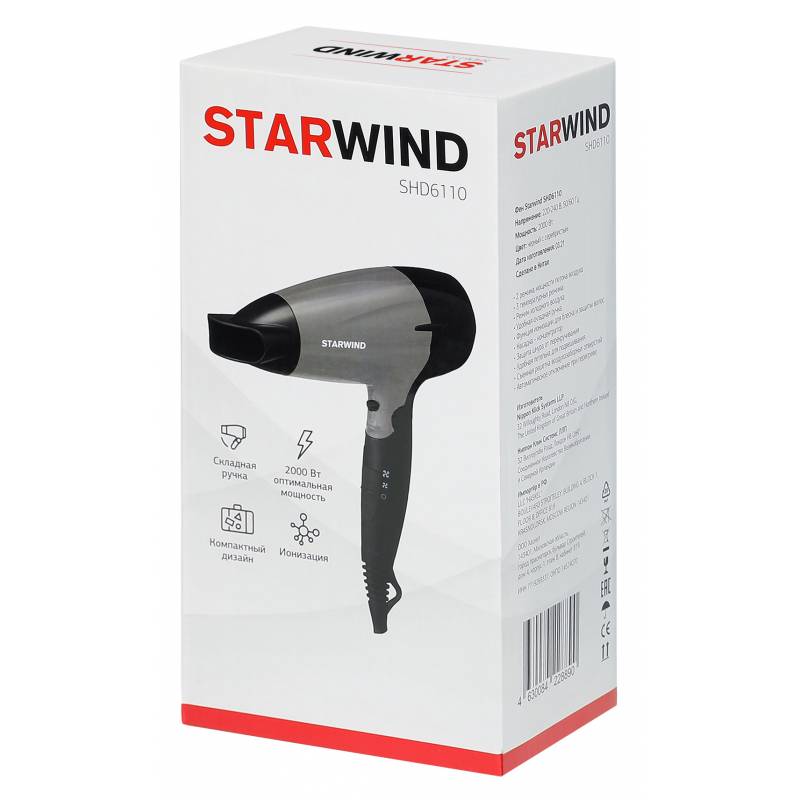 Фен Starwind SHD 6110 2000Вт черный/серебристый