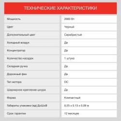 - дорожный формат, складная ручка, съемный фильтр, шарнирное крепление шнура
