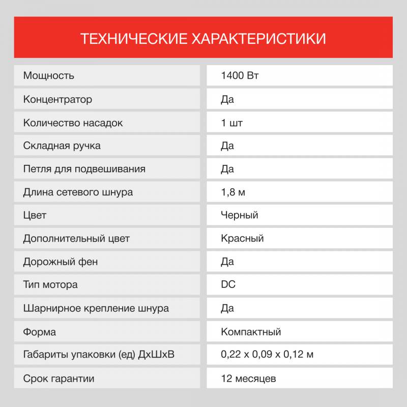 Фен Starwind SHD 7065 1400Вт черный/красный