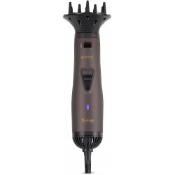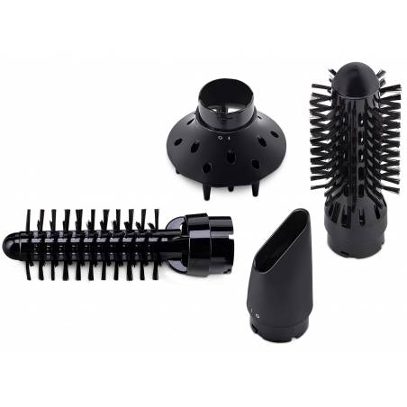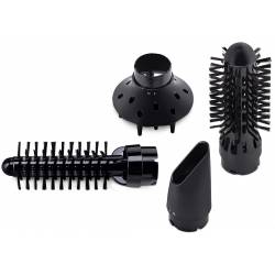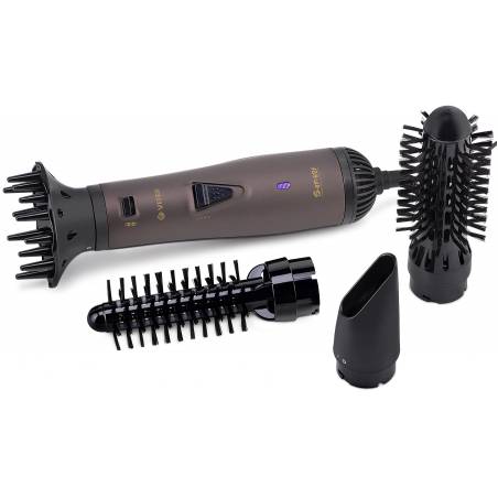- Фен-щетка может не только высушить волосы, но и красиво уложить их, оснащена тремя режимами температуры/ скоростями воздушного потока. Так же 2 термощётки диаметром 20 мм и 33 мм, которые помогут создавать изящные локоны, еще концентратор, направляющий в