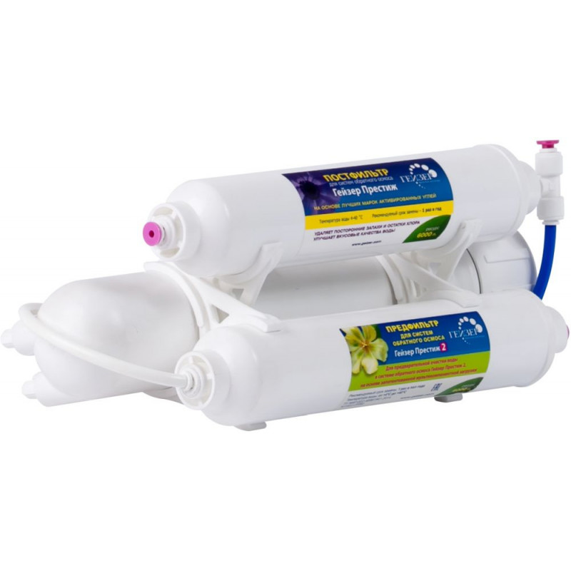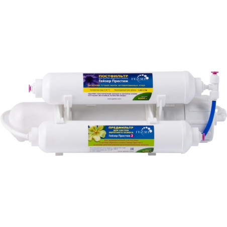 - Максимально высокая степень очистки воды с высокой жесткостью. Размер Гейзер Престиж 2 в 5 раз меньше стандартных обратноосмотических систем. Система контроля от протечек. Система работает при давлении в подводящей магистрали от 2,5 атм.