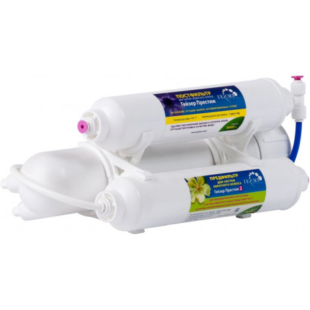 - Технология обратного осмоса, использованная в фильтре Гейзер Престиж 2, заключается в фильтровании воды через полупроницаемую мембрану. Размеры пор мембраны настолько малы, что пропускают только молекулы воды.