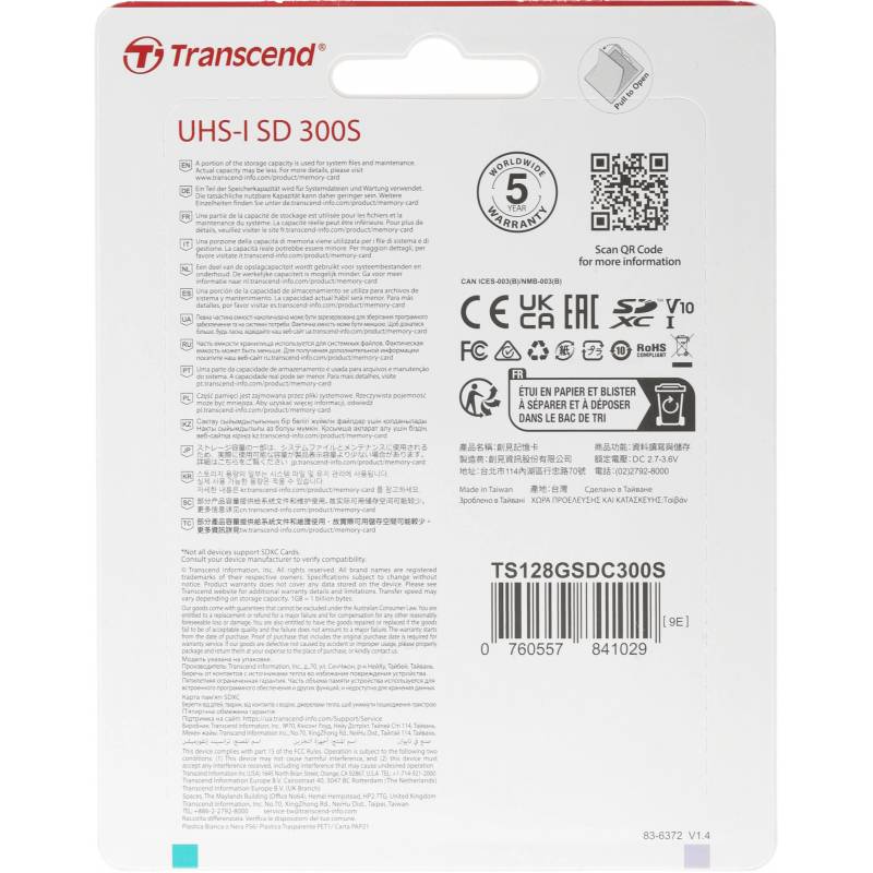 Флеш карта SDXC 128GB Transcend TS128GSDC300S w/o adapter