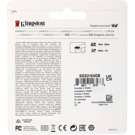 Флеш карта SDXC 64GB Kingston SDS2/64GB Canvas Select Plus w/o adapter