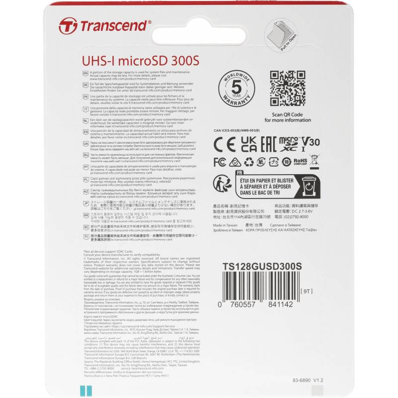 Флеш карта microSDXC 128GB Transcend TS128GUSD300S w/o adapter