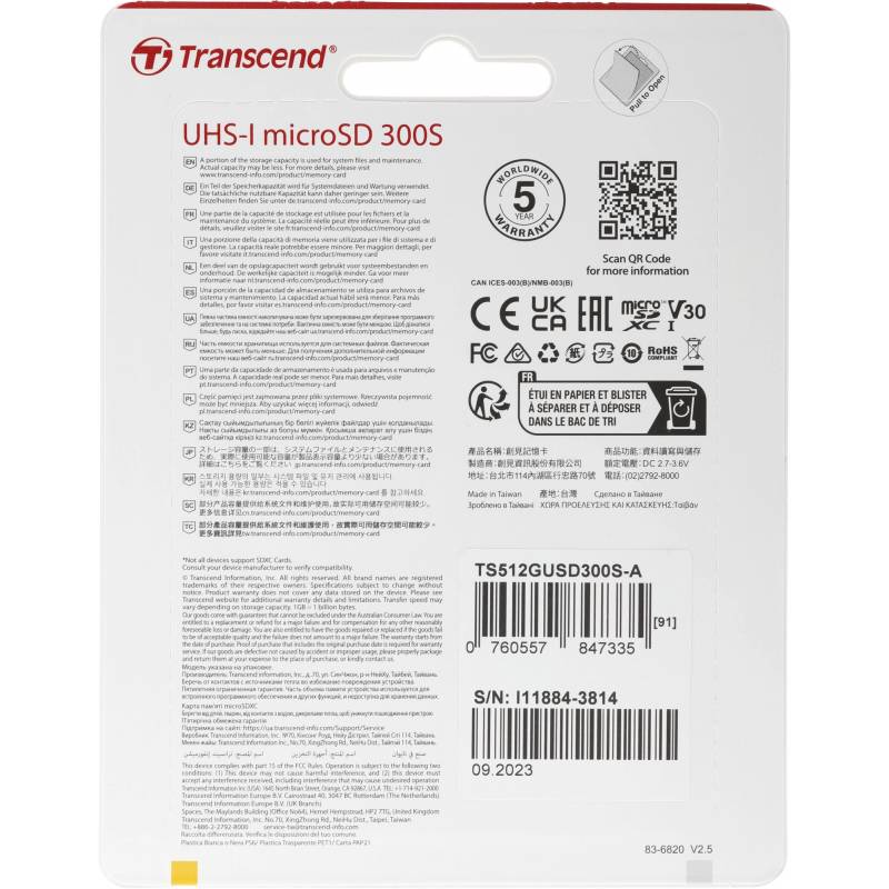 Флеш карта microSDXC 512GB Transcend TS512GUSD300S-A 300S + adapter