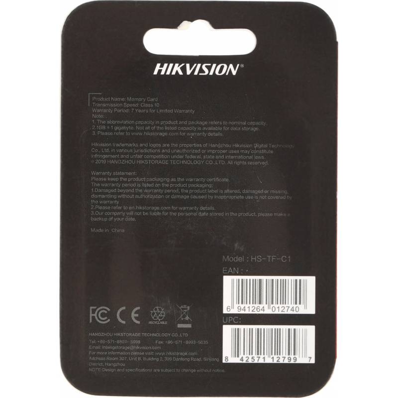 Флеш карта microSDHC 16GB Hikvision HS-TF-C1(STD)/16G/ZAZ01X00/OD w/o adapter