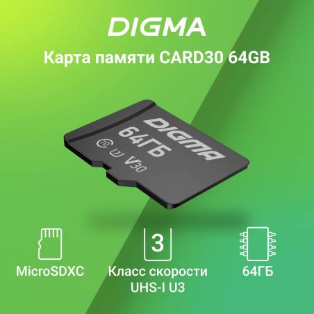 Флеш карта microSDXC 64GB Digma CARD30 V30 + adapter