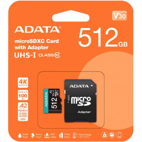 Флеш карта microSDXC 512GB A-Data AUSDX512GUI3V30SA2-RA1 Premier Pro + adapter