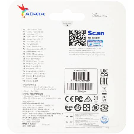 Флеш Диск A-Data 32Gb Classic C008 AC008-32G-RKD USB2.0 красный/черный