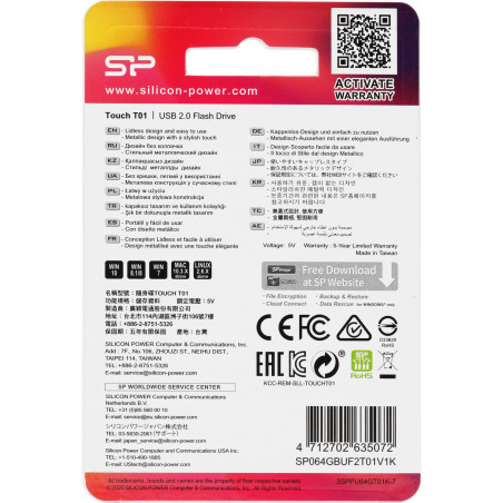 Флеш Диск Silicon Power 64Gb Touch T01 SP064GBUF2T01V1K USB2.0 черный/серебристый