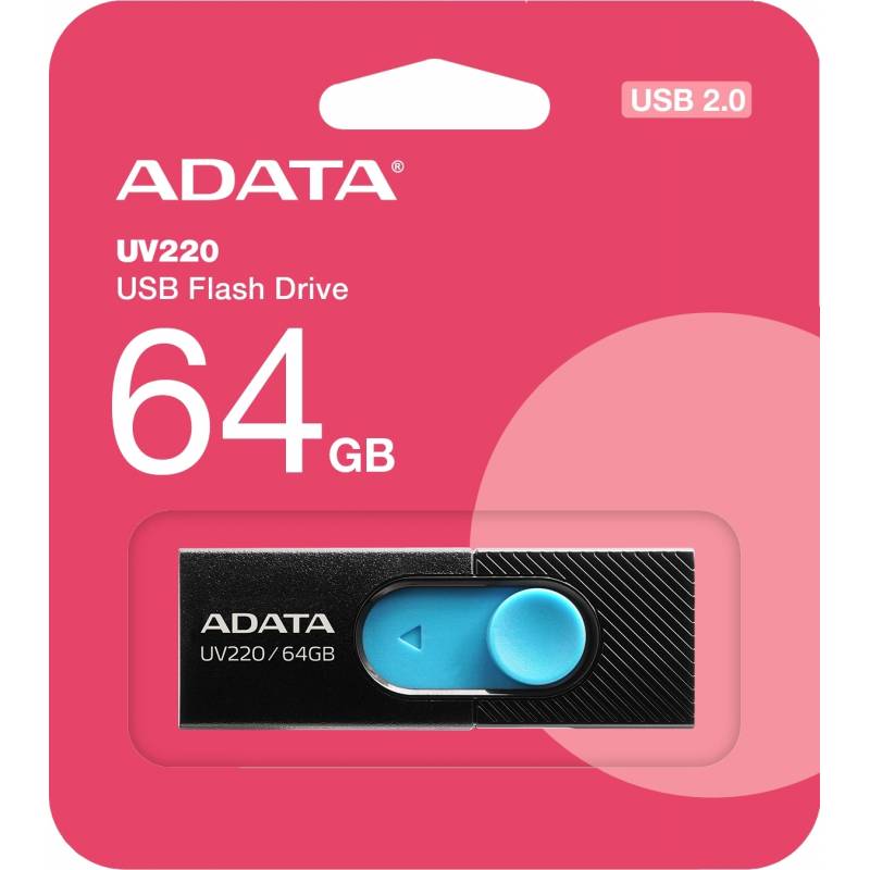 Флеш Диск A-Data 64Gb UV220 AUV220-64G-RBKBL USB2.0 черный/синий