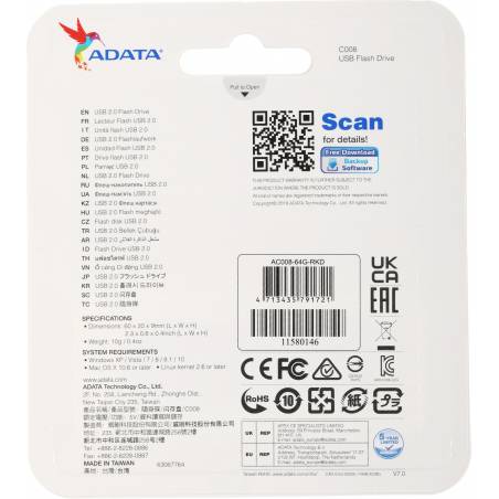 Флеш Диск A-Data 64GB Classic C008 AC008-64G-RKD USB2.0 красный/черный