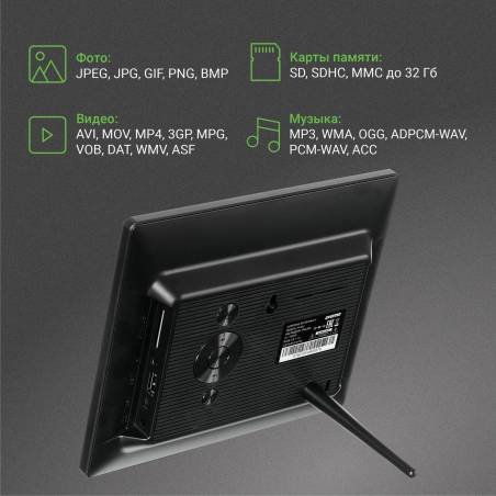 Фоторамка Digma 8" PF-843 IPS 1024x768 черный пластик ПДУ Видео