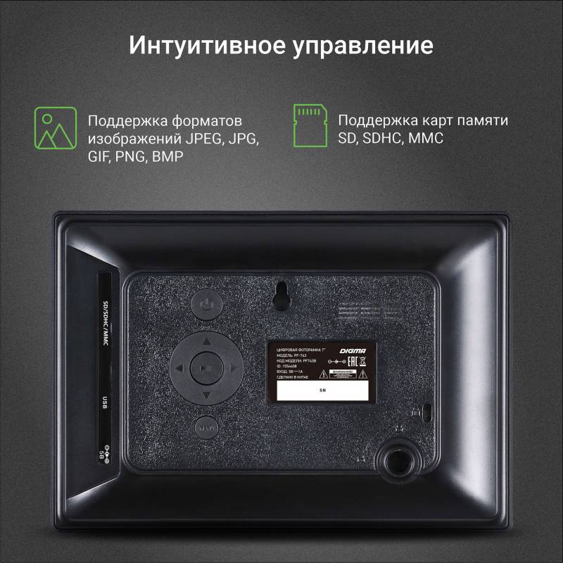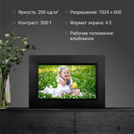 Фоторамка Digma 7" PF-743 IPS 1024x600 черный пластик
