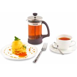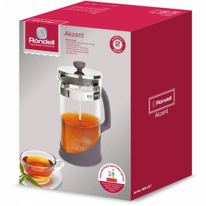 - Колба Френч-прессов Akzent изготовлена из высококачественного термостойкого стекла, а держатель из АВС-пластика черничного цвета и нержавеющей стали. Для комфорта в использовании на крышке значок, который «подскажет», где фильтр слива. В коллекции две мод