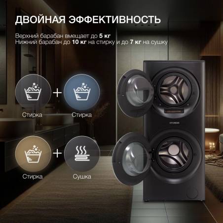 Стиральная машина Hyundai Proxima WMD9424 класс: A+++ загр.фронтальная макс.:15кг (с сушкой) темно-серебристый
