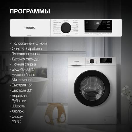 Стиральная машина Hyundai WME8203 класс: A+++ загр.фронтальная макс.:8кг белый инвертер