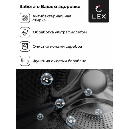 - Интеллектуальное il-Dos Дозирование моющего средства, Обработка ультрафиолетом, Очистка ионами серебра, Антибактериальная стирка, Инверторный двигатель с прямым приводом Direct Drive Motion, Режим сушки