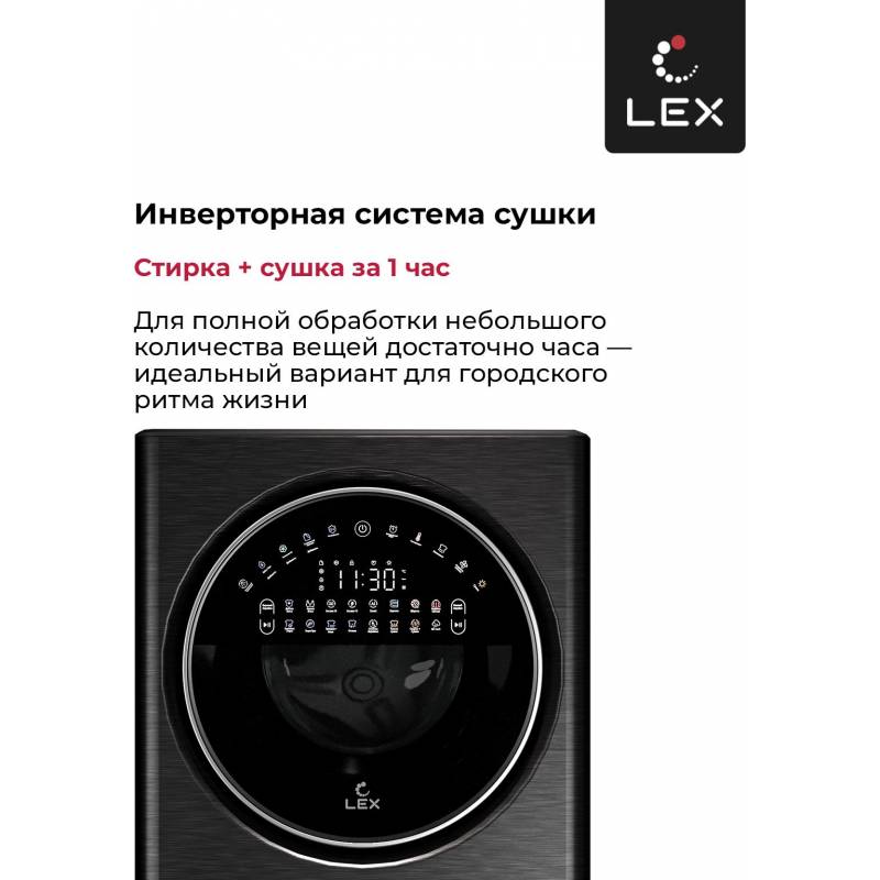 Стиральная машина Lex LWM10714LuxIDD класс: A+++ загр.фронтальная макс.:10кг (с сушкой) черный инвертер