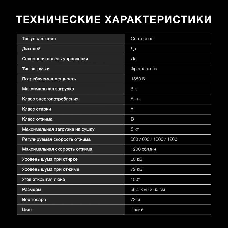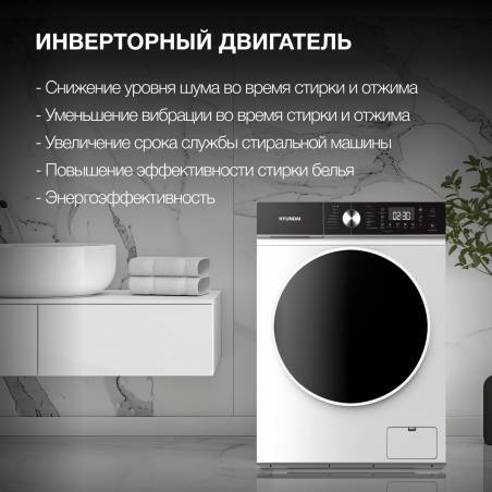 Стиральная машина Hyundai WFD8216 класс: A+++ загр.фронтальная макс.:8кг (с сушкой) белый инвертер