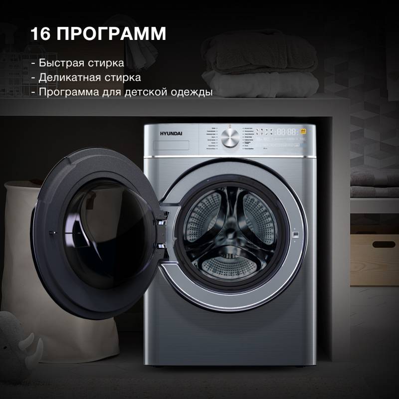 Стиральная машина Hyundai WMD9413 класс: B загр.фронтальная макс.:10кг (с сушкой) темно-серебристый инвертер