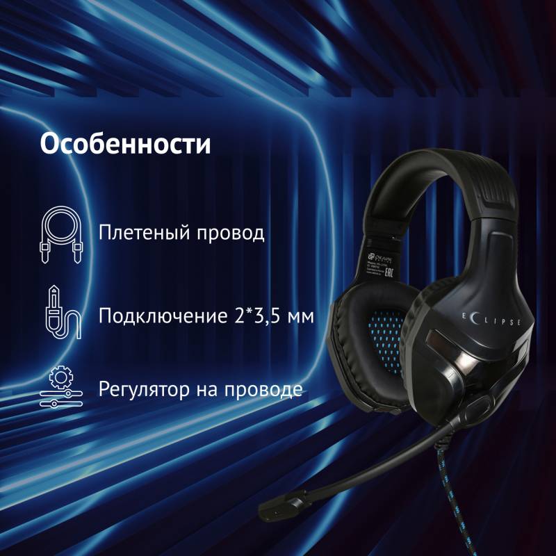 Наушники с микрофоном Оклик HS-L370G ECLIPSE черный 2м мониторные оголовье (1090730)