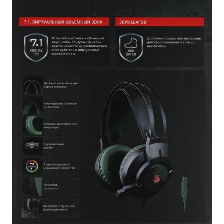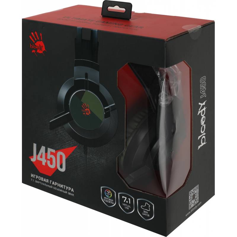 Наушники с микрофоном A4Tech Bloody J450 черный/зеленый 1.8м мониторные оголовье (J450)