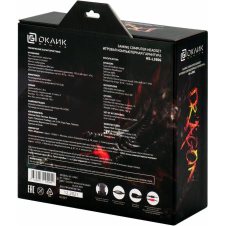 Наушники с микрофоном Оклик HS-L390G DRAGON черный/красный 1.8м мониторные оголовье (1100413)