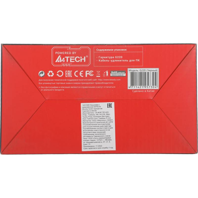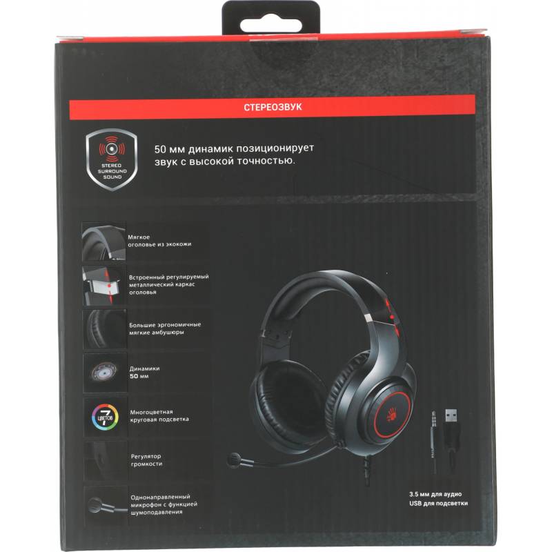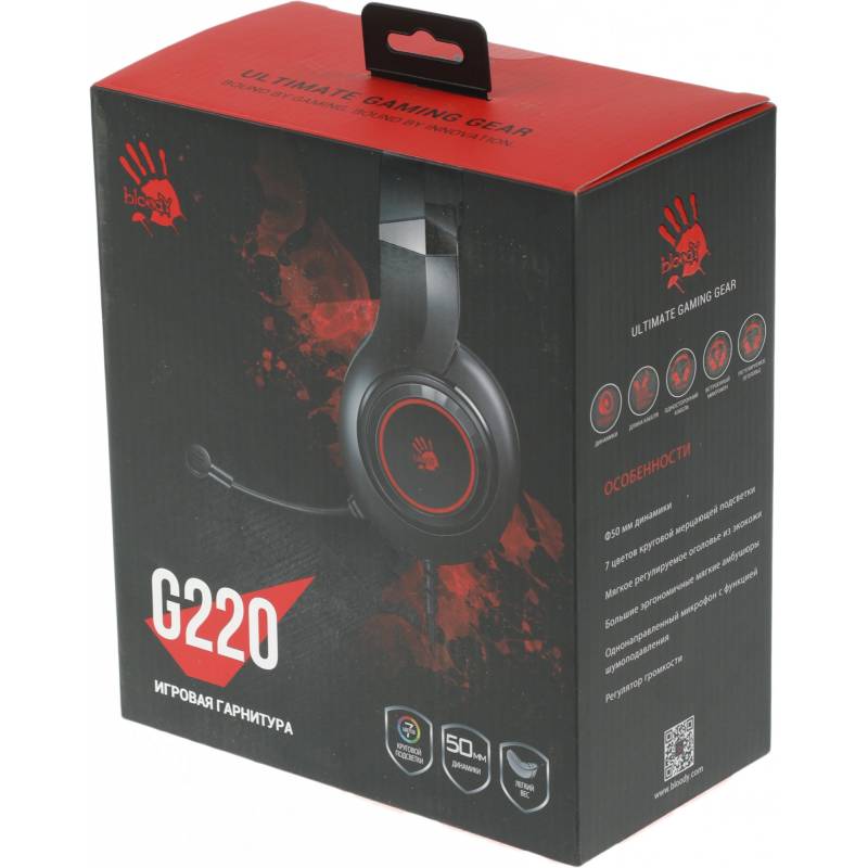Наушники с микрофоном A4Tech Bloody G220 черный 2м мониторные оголовье (G220 AUX3.5-4PIN + USB)