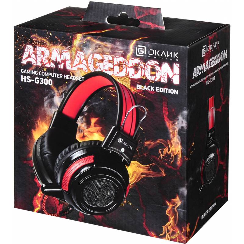 Наушники с микрофоном Оклик HS-G300 ARMAGEDDON черный/красный 2.2м мониторные оголовье (337457)