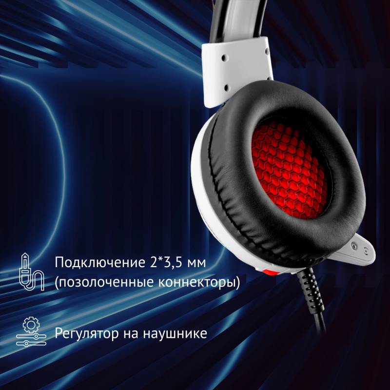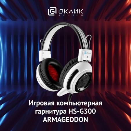 Наушники с микрофоном Оклик HS-G300 ARMAGEDDON белый/черный 2.2м мониторные оголовье (361558)