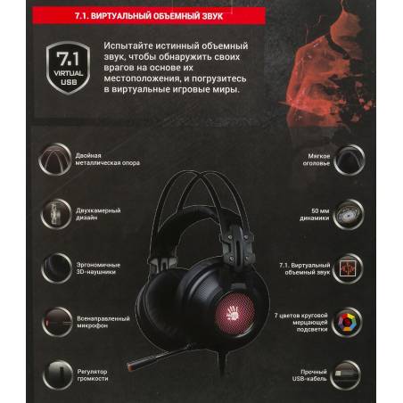 Наушники с микрофоном A4Tech Bloody G525 черный 2м мониторные оголовье (G525 BLACK)