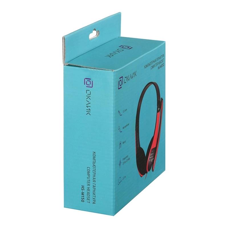 Наушники с микрофоном Оклик HS-M150 черный/красный 2.2м накладные оголовье (359486)