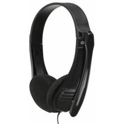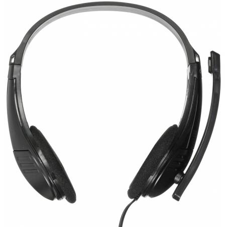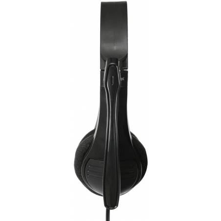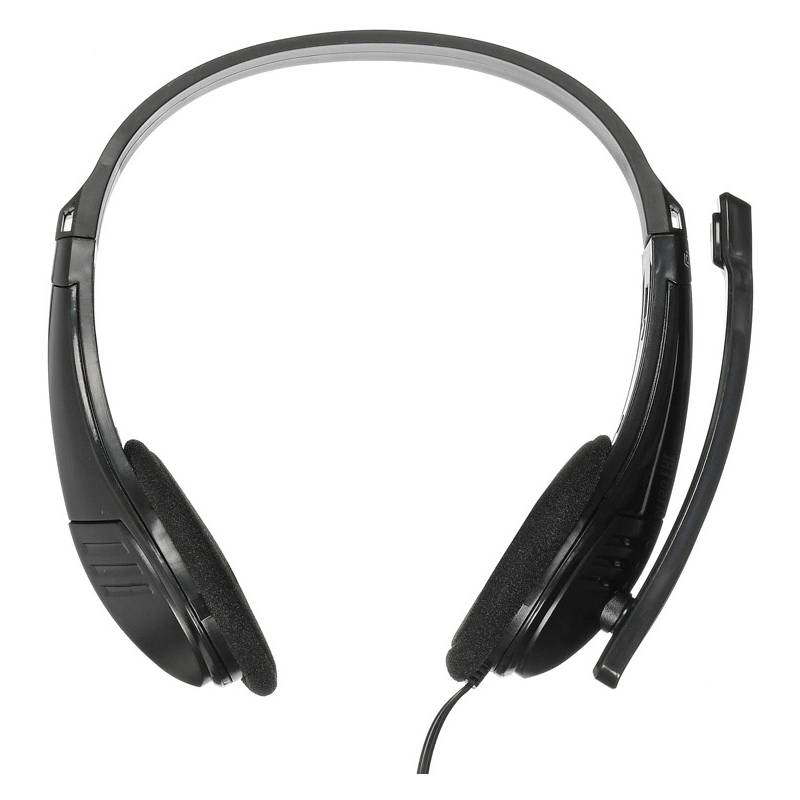 - Удобная легкая компьютерная гарнитура с поворотным микрофоном, регулируемым оголовьем и длинным проводом