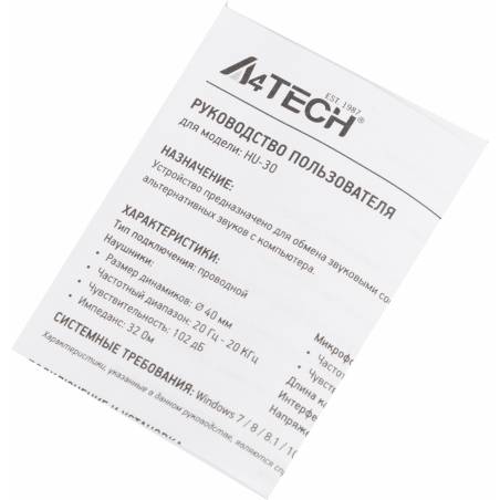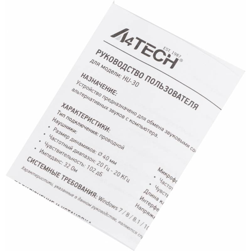 Наушники с микрофоном A4Tech HU-30 черный 2м накладные USB оголовье