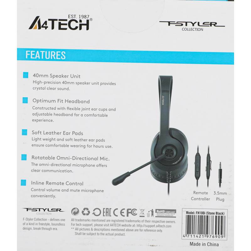 Наушники с микрофоном A4Tech Fstyler FH100i черный 1.8м накладные оголовье (FH100I (STONE BLACK))