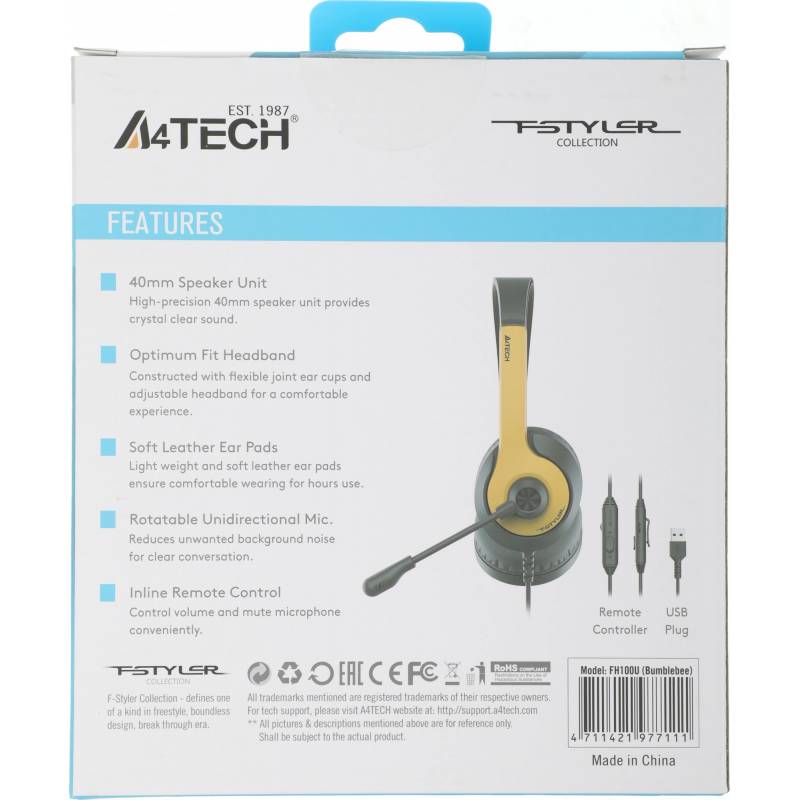 Наушники с микрофоном A4Tech Fstyler FH100U желтый/черный 2м накладные USB оголовье (FH100U (BUMBLEBEE))
