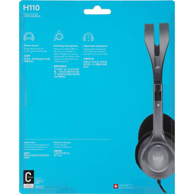 Наушники с микрофоном Logitech H110 темно-серый 1.8м накладные оголовье (981-000472)