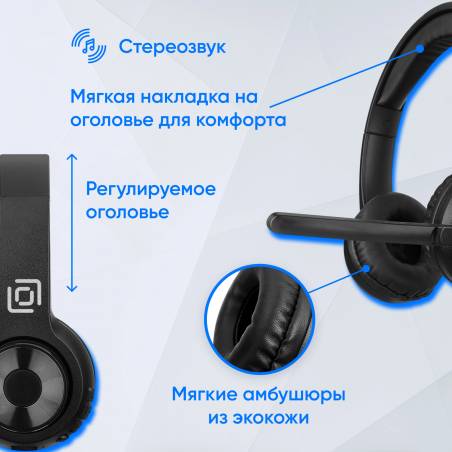 Наушники с микрофоном Оклик HS-M310 черный 1.5м накладные BT оголовье (1978706)