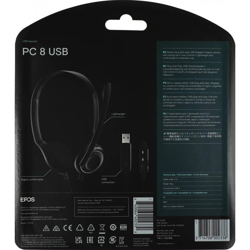 Наушники с микрофоном Epos Sennheiser PC 8 USB черный 2м накладные USB оголовье (1000432)