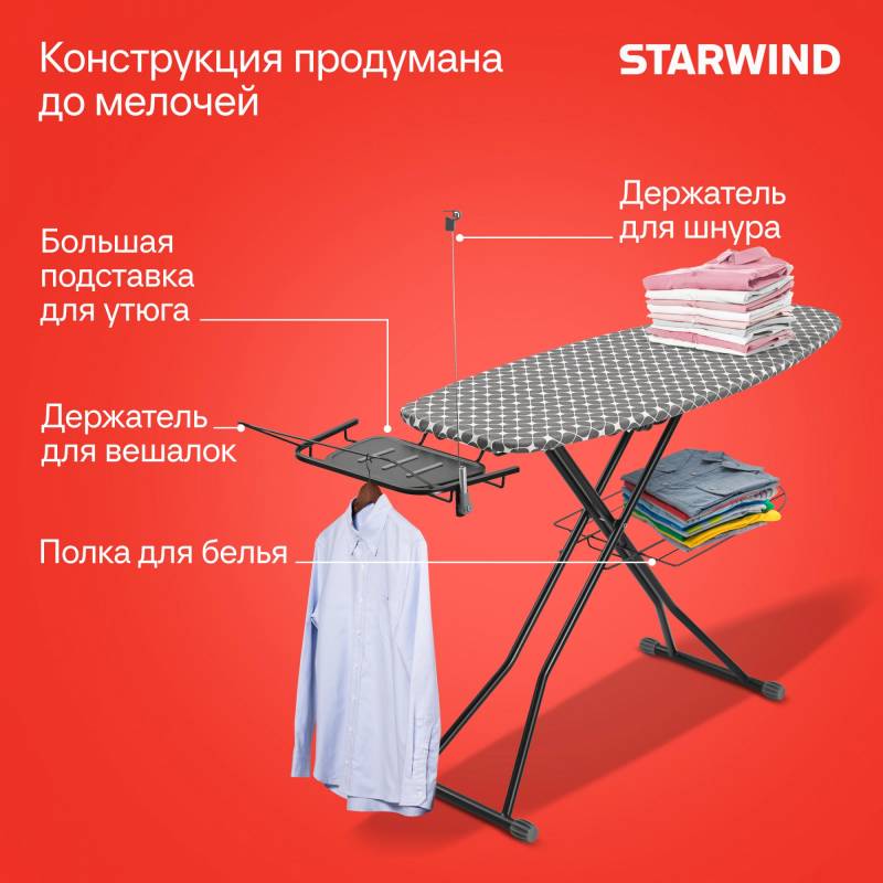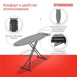 Гладильная доска Starwind SW-IB1802 129.50x46см рег.высот. черный/серый