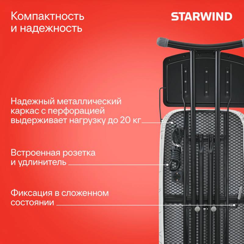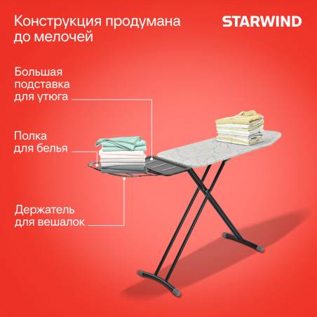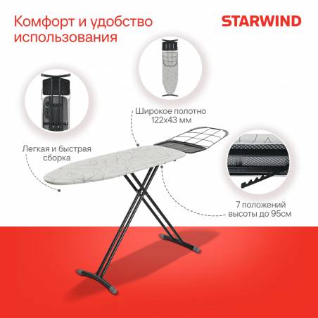 Гладильная доска Starwind SW-IB1248 122x43см рег.высот. черный/белый